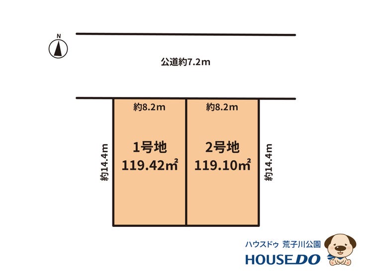| 土地面積 | 119.42㎡(36.12坪) | 接道 | 北側(公道)幅 約7.2m 間口 約8.20m |